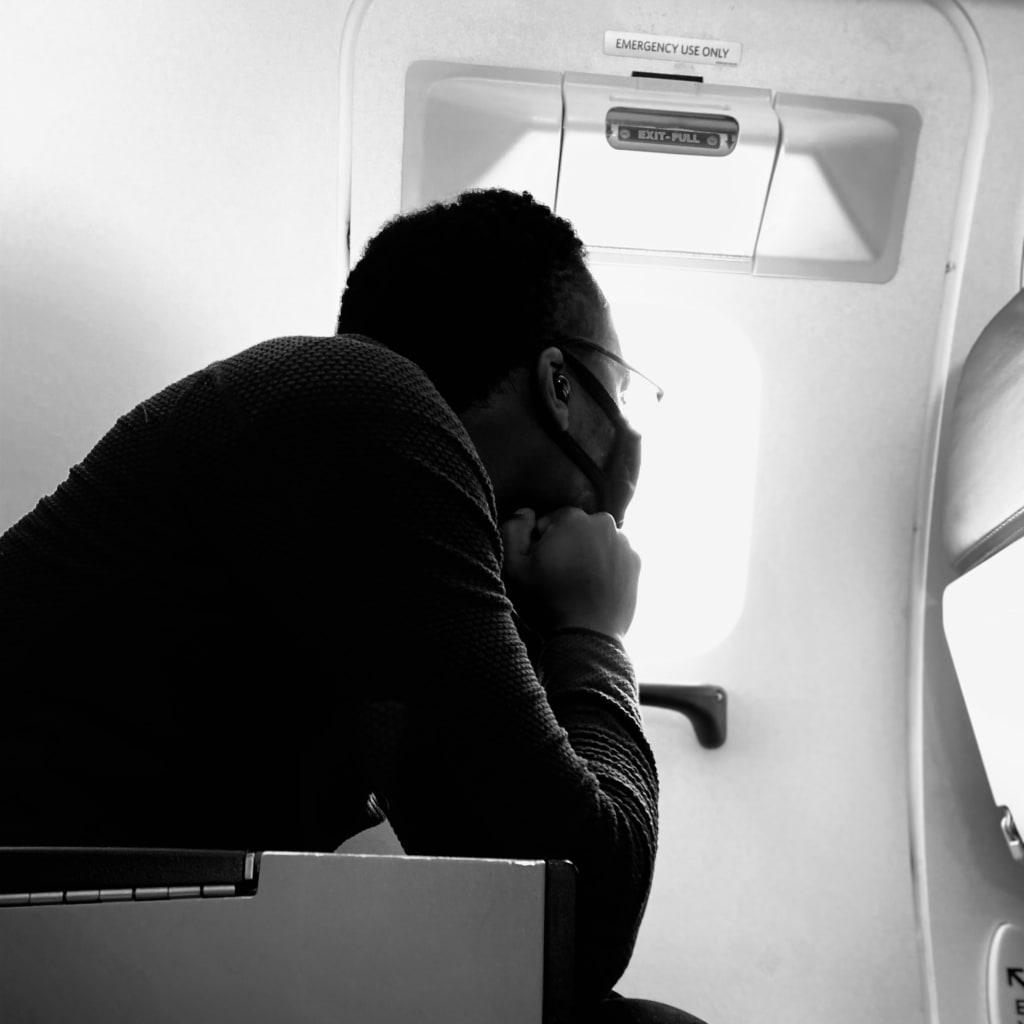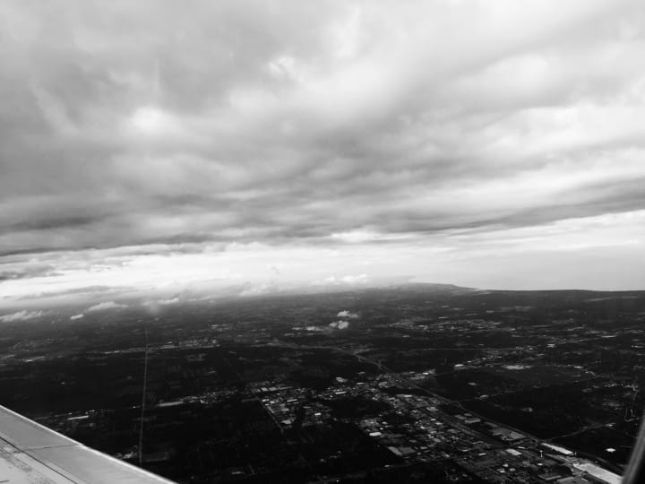 I didn’t have the awareness to know what was truly important back then. Now, I know it’s time. A reminder that only being suspended hundreds of miles over the clouds can give me. So, as I scribble in this journal with my headphones on, flying over my city, staring out my small window, and pretending to talk to my father.