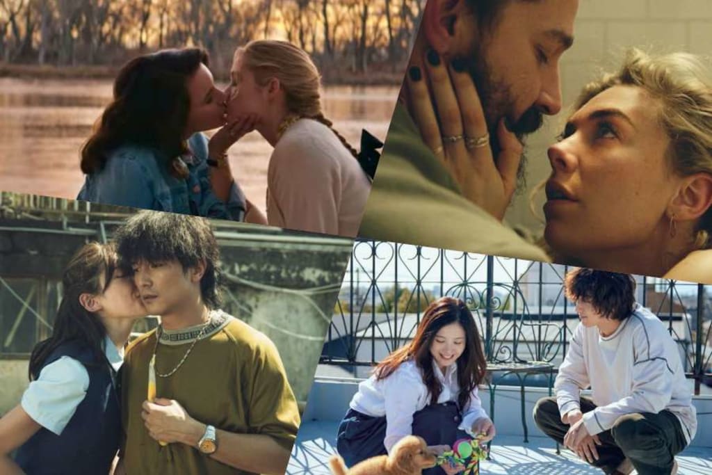 The girl took the rose, looked at its blooming beauty, and felt moved. The boy reached out and gently touched the girl's cheek, then slowly leaned in, their lips gently touching.