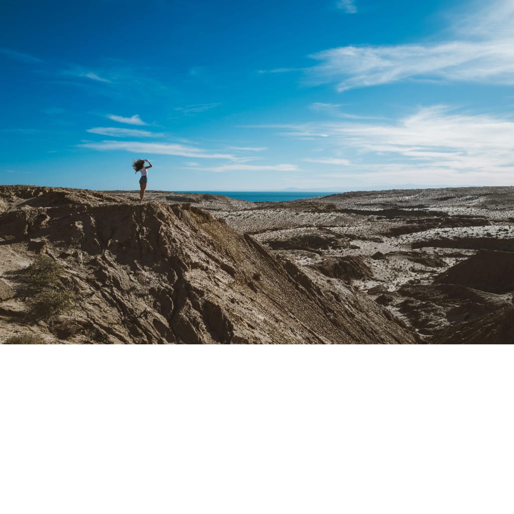 The sun was bright overhead, beating down on the mixed shades of brown; it was so overwhelming that it blinded me. I felt alive right now with my burning calves from the steep hike, and combined with the burn in my shoulders, I felt free. I took a deep, dusty breath, closed my eyes and realized I was in control of my life for the first time. No more lies, not by him, not to myself, no more illusions that my marriage was healthy. For the first time since I found him in bed with her, I was grateful. A small voice in my head told me that I should thank him for his affair because, at that moment, I no longer had to be second in my husband's eyes; I could be first for myself. I had just found a piece of me long thought lost, and I was done. I felt at peace, and suddenly, I knew I would be alright and could do this life without him. I embraced the moment, inhaling my newfound life, and as I tilted my head up into the sun, feeling the warmth wash over my face, I felt happy. Engulfed in the desert's parched silence, I was nothing but another grain of sand in the wind.
