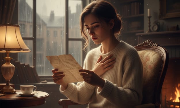 The wind from the open window flutters the pages of her old notebook, and the sunlight falls gently on the words she once wrote.