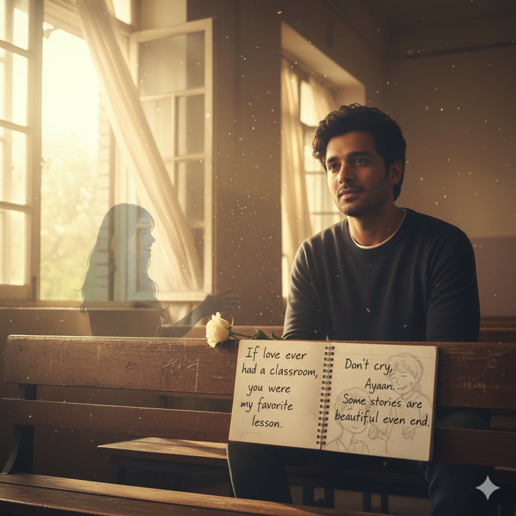 On the last bench lay her doodled notebook — pages filled with sketches of the two of them laughing, arguing, dreaming.