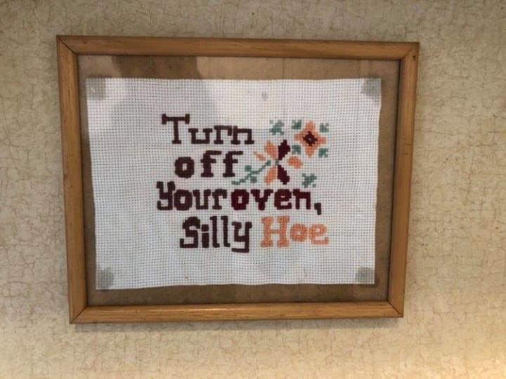 The first cross stitch I made, getting back into it as an adult, was for a classic ADHD reason – although I didn’t know it at the time. I kept leaving my apartment with the oven left on. On several occasions I left it on with things still cooking in it and then went to work! My building manager was far too kind to me on those calls to, please, although I don’t know how much of an emergency it is, let themselves into my apartment to turn my oven off. This of course wouldn’t do. I wasn’t about to get evicted over some scorched sweet potatoes.
