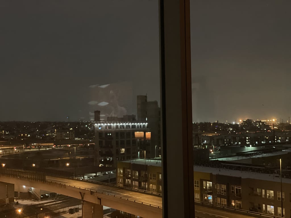 My apartment is completely black, except for the floor to ceiling windows letting in the moon and the twinkle of the few lights left on in the other high rises across the city... I have been here 4 months and I seriously feel like I have not been living... but that doesn’t help me figure out what the freak is going on at my front door... I tiptoe to the door and let my hand slowly slide up the threshold and tip the peephole open...