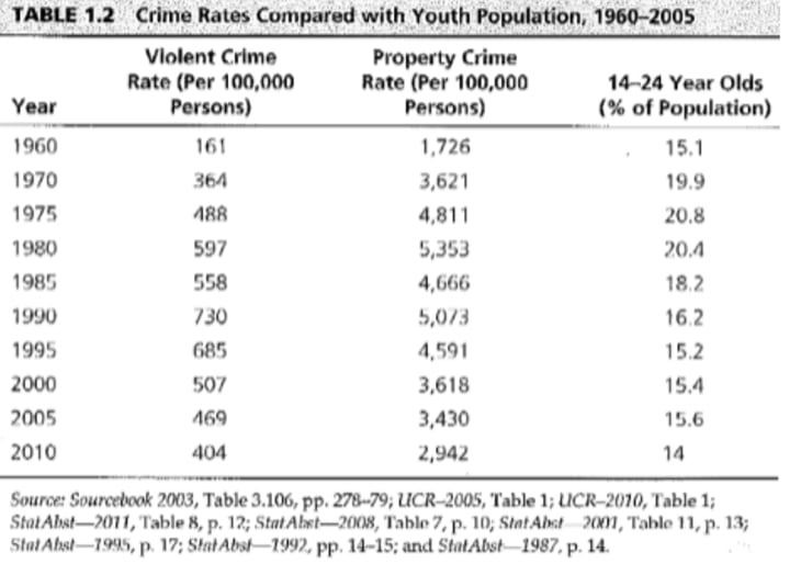 Well, this one is kind of true. Yes, 14-24 year old males do tend to have high degrees of criminal activity but that doesn’t explain the increase in crime rates. The percentage of the population for 14-24 year old males in 1995-2003 is similar to the population for 1960, yet the crime rate is five times higher.