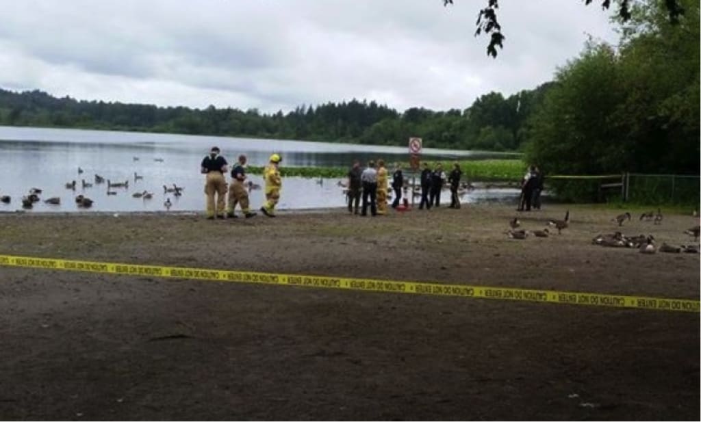 I stepped closer, and then a little closer, looking up and down, trying to avoid the green and white duck shit at my feet. I could see where the officer was standing; she was looking down at something just a few feet into the water beside the bushes. She was looking down at a pair of old boots that were sticking heel up out of the water. I looked a little closer and saw a pair of legs in those boots.