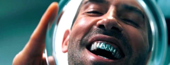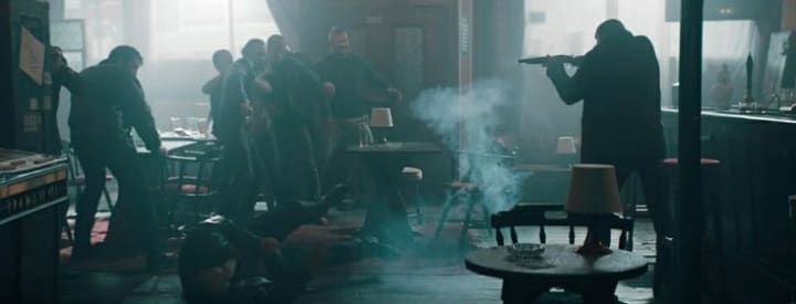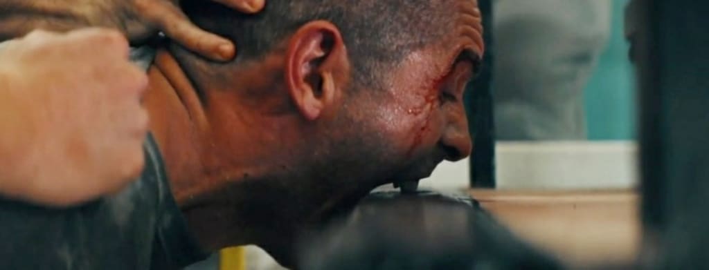 Not only does Adkins needs to show how extreme anger runs through Cain’s veins. That’s about 90 percent of the total playing time. You’ll also see how normal and fair Cain is at the start of the movie. A decent man who begs his brother to help him with the idea to start a gym. The transformation, however, is frightening when he’s in jail for a while, a punishment he got when a job he had to do for his brother went terribly wrong. It’s there that the fairly well-behaved Cain is slowly turning into a cruel hot-head. The constant attempts of fellow prisoners to kill him one way or the other ensures that he trains and practices every day. These confrontations are already very brutal and cruel. It’s also here that he gets metallic teeth. When he finally ends up in a private pub, Cain is a scarred man. Both internally and externally. The only thing that interests Cain is revenge.