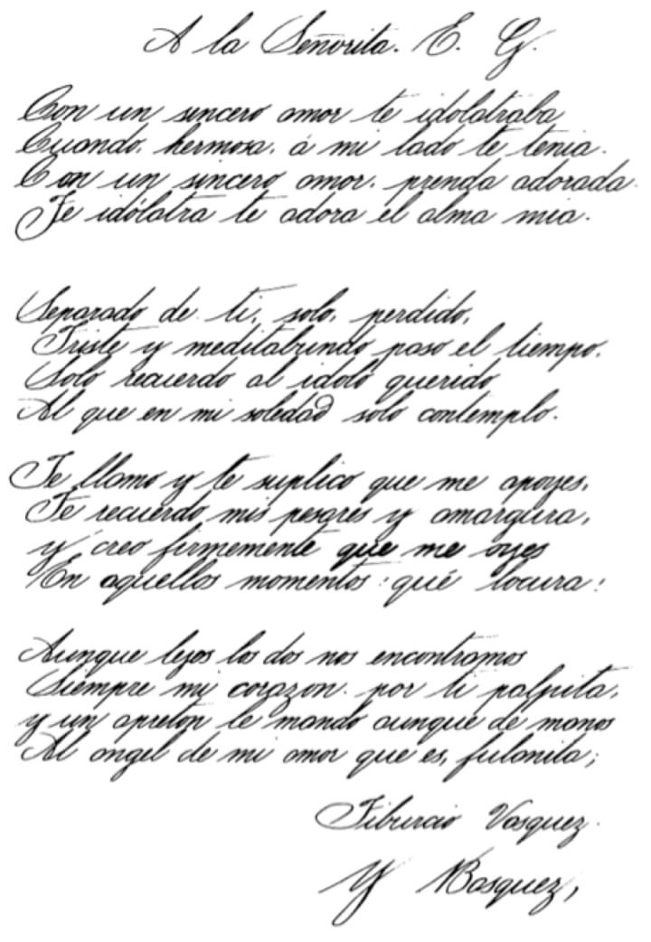 Figure 2 Tiburcio Vasquez, “A La Señorita E.G.” (circa 1874 - 1875)