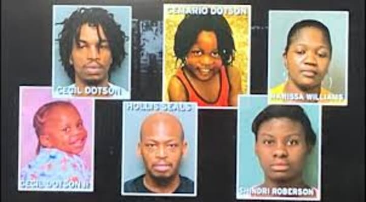 Three children — Cecil “C.J.” Dotson Jr. (9), Cedric Dotson (5), and Ceniyah Dotson (3 months) — were left with serious injuries but survived and were taken to the hospital.