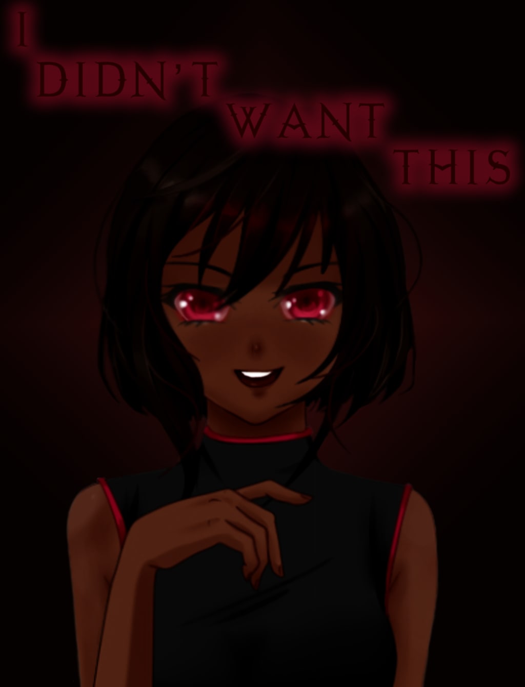 Once Olive was a few feet from him, he decided to run, but tripped on his own feet, making Olive laugh maniacally to the sky. The boy turned toward Olive, pushing himself across the ground in an effort to get away. Olive reached down for his neck, helping him stand up. Before he could react, she grabbed either side of his face and stared deeply into his eyes. Her eyes became red with bloodlust, and she wanted him to feel the same. When she blinked, he did as well and when they opened their eyes again, his eyes were red like hers. When he looked at Olive, instead he saw his friend's fearful face. His body relaxed, feeling safe with his “friend”. She let his face go and looked over at the other boy, still crying in pain. When the red-eyed boy saw him, he saw Olive stuck on the sharp branch, crying her eyes out. He smiled evilly, a slight chuckle erupting from his stomach. He enjoyed seeing Olive in pain after the pain she caused them. Olive handed him the switchblade from her pocket and said 2 words.