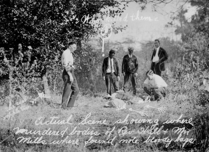 The bodies were identified as Reverend Edward Wheeler Hall and Eleanor Reinhardt Mills. The two were lovers, but the affair was complicated, Eleanor was married to the church's janitor and Reverend Edward was married to a wealthy woman, Frances Stevens Hall. She was the main murder suspect.
