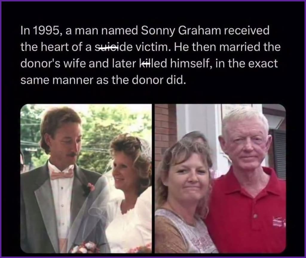 Thirteen years earlier, Graham received a heart transplant from a man who had taken his own life, Terry Cottle. Nearly a decade later, Graham married Cottle's ex-wife. Fast forward a little more than another decade, and he'd take his life the same way as the man who gave him a second chance.