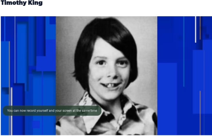 Timothy was abducted on a Wednesday. By Thursday, 100 lawmen from Oakland County, volunteers, Oakland County Sheriff’s investigators, the county helicopter as well as the special Oakland County Task Force all were diligently searched the area. That day the Kings stayed home most of the day, but Timothy's father Barry did tell the media, “we very much want Tim to come home. We love him very much. He had a basketball game Saturday and missed practice today (Thursday). He’s active in a school play. He’s an achiever and a participator. We just love Tim and want him to come home.” Barry also told the media that just the week before that Timothy had said that he would not speak to strangers but instead would "run away from them."
