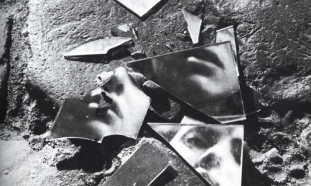 Inside her reflection.