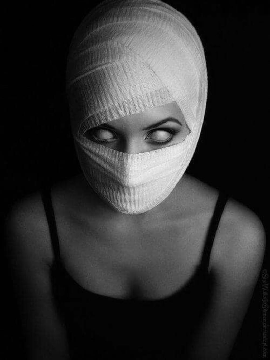 A dark figure. Hat. Glasses. Gloves.
