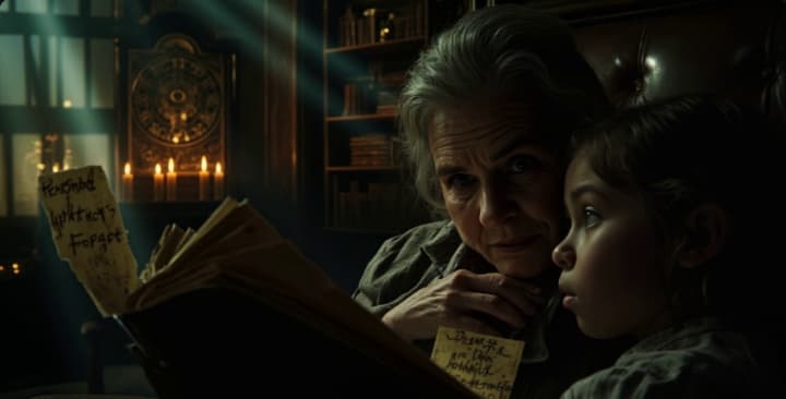 She died that night. A month later, I found her journal hidden in a hollowed-out copy of Wuthering Heights. Inside: maps, dates, strange sketches of a clocktower with thirteen hours.