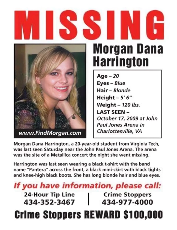 Let’s rewind to October 17, 2009. Morgan Dana Harrington, a bright 20-year-old student from Virginia Tech, had one thing on her mind that day: Metallica. She and her friends were thrilled to attend the iconic band's concert at the John Paul Jones Arena, located in the heart of the University of Virginia campus. They had arrived early, buzzing with excitement. But during the opening act, Morgan left her seat to find a restroom and never came back.