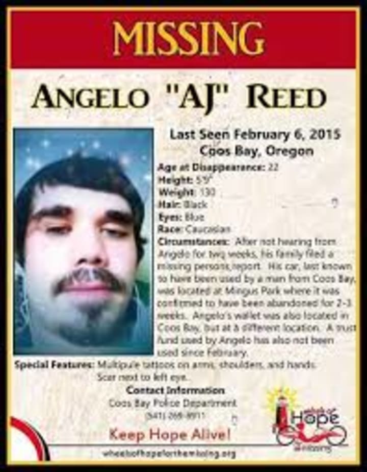 Angelo Reed’s disappearance is listed in the National Missing and Unidentified Persons System (NamUs) under case number MP29020. The Coos County Sheriff’s Office remains the lead agency and can be contacted at (541) 396-3121. No suspects have been named. No new leads have been publicly disclosed.