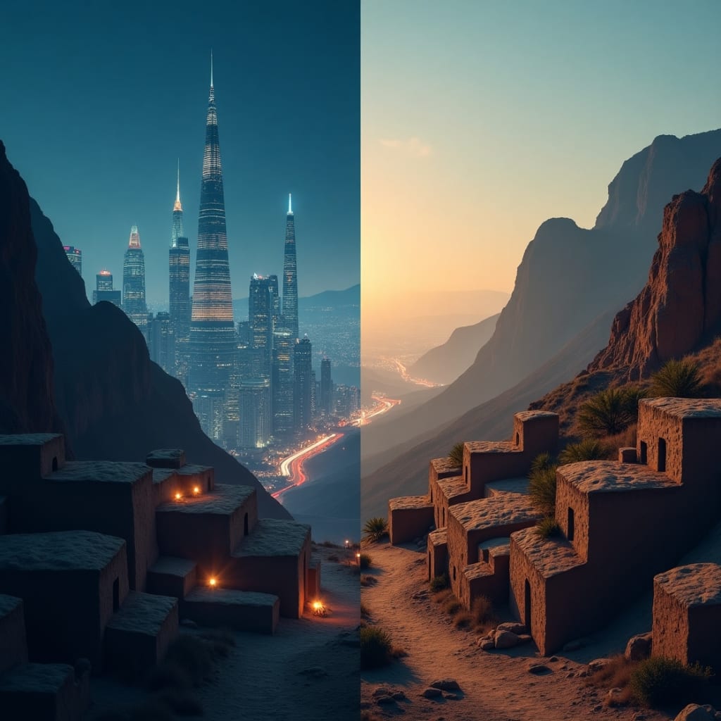 "Modernity and tradition side by side—reflecting two visions of progress, each rooted in its own values."