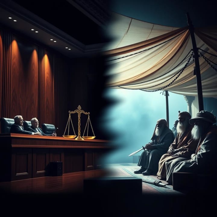 "Law vs. tradition in justice systems."