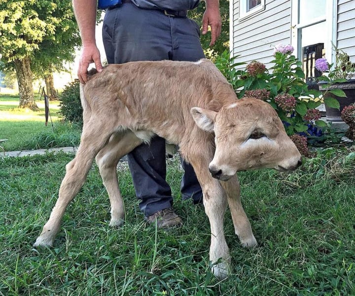 Although having two faces, the calf had only one brain, and while most calf's born this way only survive 40 or so days, Lucky, who became the family pet, passed away at 108 days.