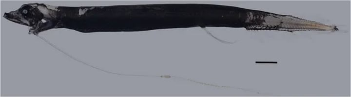 This new species of dragonfish, of which there are over 100 related species already discovered, is about 9 inches in length, with quite a notable, creepy maw, making it, though tiny, quite the frightening-looking deep-sea critter.