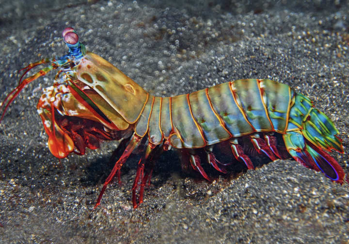 Mantis Shrimp: Diving beneath the glistening waves, we discover the vibrant world of the mantis shrimp. Despite its name, this marine crustacean is neither a mantis nor a shrimp but a truly unique creature. What sets the mantis shrimp apart is its extraordinary visual system, boasting one of the most complex eyes in the animal kingdom. With an astonishing sixteen color receptors, compared to the mere three in humans, it perceives a kaleidoscope of hues that elude our senses. Additionally, the mantis shrimp can detect polarized light, allowing it to navigate and communicate with unparalleled precision. Its magnificent eyes and the mesmerizing world they reveal make the mantis shrimp an exquisite wonder of the deep.