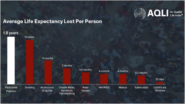 In a recent study by Energy Policy Institute at the University of Chicago it was found that particulate air pollution is the major cause of reduction of life expectancy, far exceeding malaria, tuberculosis and even deadly infection like the HIV/AIDS.