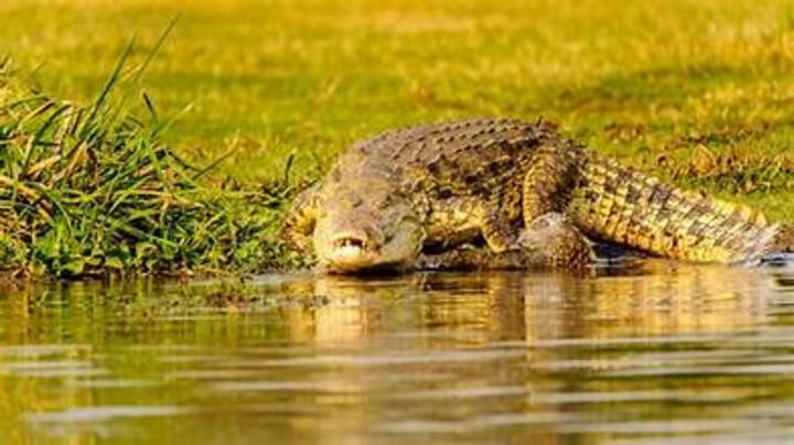 Nile crocodiles are one of the three crocodile species in Africa. They are the second-largest crocodiles on Earth. They stay near or in water, inhabiting swamps, estuaries, rivers, and lakes. They feed on both fish and large land animals.