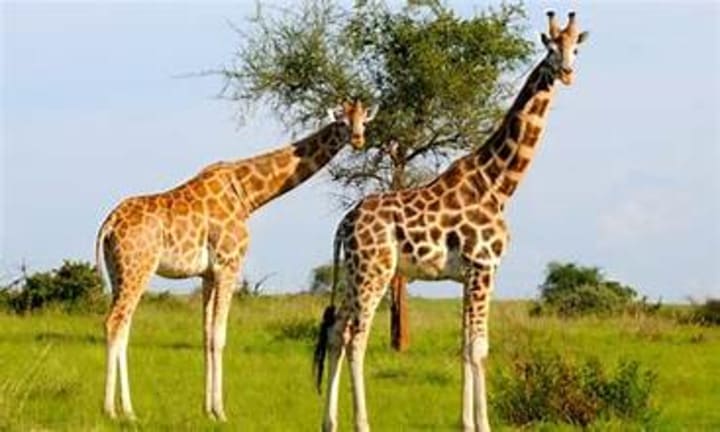 Rothschild’s giraffes are also called Uganda giraffes and are the one type of giraffe found in the country. They are the tallest giraffes and can reach a height of 19 feet. They are found in the savannahs, grasslands, open woodlands, wooded plains, shrubs, and thickets. These giraffes are herbivores and primarily feed on thorny acacia trees and other similar plants and trees.