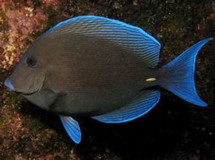 Blue tangs brighten reefs with their vivid blue bodies and yellow tails. These fish are primarily herbivores, feeding on algae and plant matter. They swim about in schools among coral heads. They are a colorful sight for snorkelers and are known for their active swimming and social behavior.