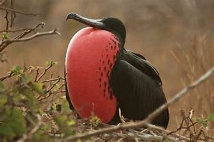Frigatebirds are known for soaring effortlessly with their forked tails and huge wingspans. All have predominantly black plumage, long, deeply forked tails, and long, hooked bills. Frigatebirds spend most of the day in flight hunting for food and roost on trees or cliffs at night. Their main prey are fish and squid.
