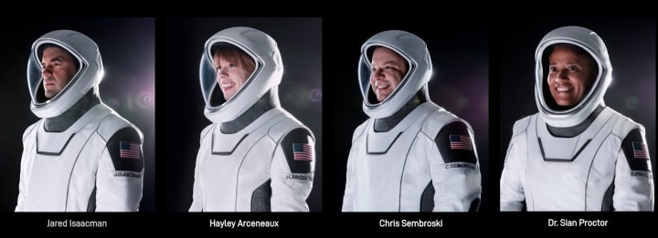 Thanks to NASA, professionally trained astronauts have been going into space for decades now. The Inspiration 4 mission, on the other hand, is made up exclusively of private citizens: Jared Isaacman, founder and CEO of Shift4 Payments; Hayley Arceneaux, a physician assistant at St. Jude Children's Research Hospital; Chris Sembroski, a Machine Fault Detection & Diagnostics Lead at Lockheed Martin, and geoscientist Dr. Sian Proctor.