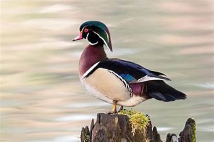 Wood ducks are a species of waterfowl. They breed and live in North America, inhabiting wooded swamps, shallow lakes, marshes, ponds, and rivers with dense vegetation. In the autumn, they migrate south and can be seen on the Atlantic coast. Wood ducks also fly to eastern Texas and the West Indies.