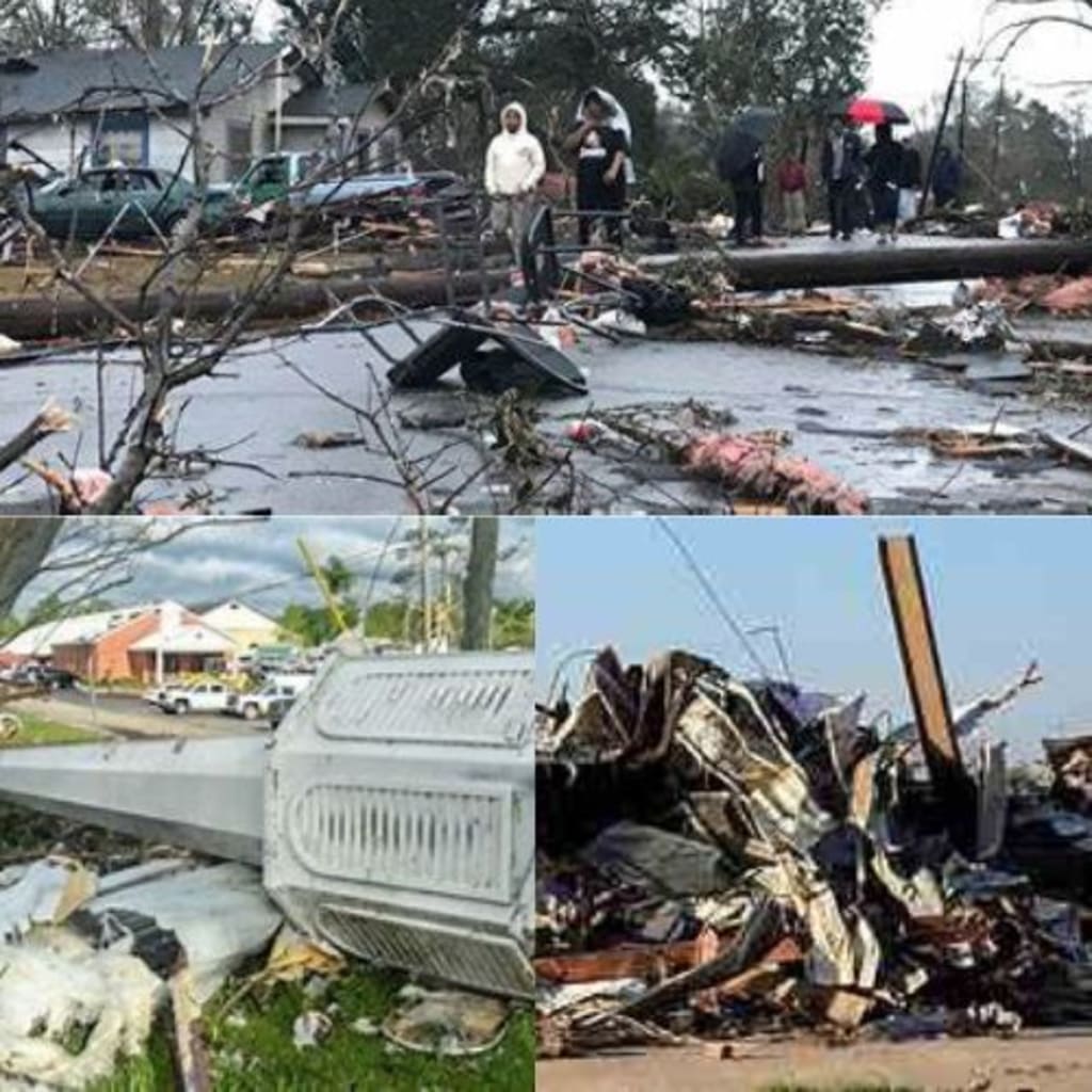 Late on Friday, a devastating tornado and powerful thunderstorms moved across Mississippi and Alabama, causing more than 100 miles of devastation, according to local and federal authorities.