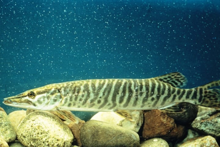 Muskellunges, or muskies, are known for their size and great hunting skills. These fish can grow more than 60 inches long which makes them one of the largest freshwater predators in North America. They lie in wait, using their camouflaged appearance to blend into their surroundings, and strike with lightning speed when prey comes close.