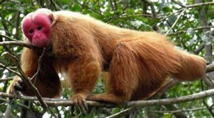 Bald uakaris are small New World monkeys that primarily live in the trees along the lakes. These monkeys have bald heads and flat, hairless red faces. They mostly dwell in areas with aguaje palm trees. Bald uakaris are omnivores; their primary diet is mainly based on fruits and seeds.