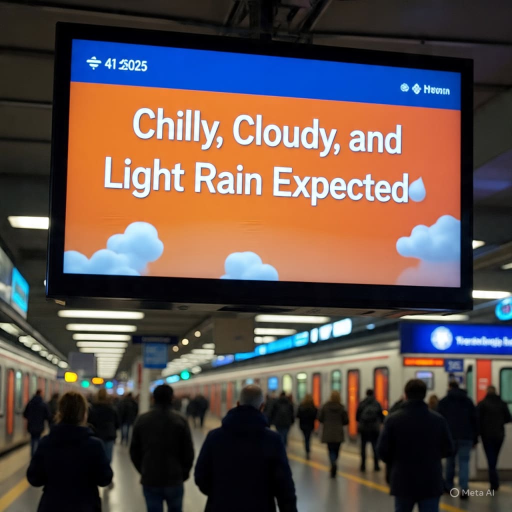 As evening approaches, temperatures are expected to gradually decline, returning to around 7°C by nightfall. Cloud cover will remain dominant, and light drizzle is possible during the evening commute.
