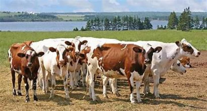 The Ayrshire is among the largest cattle breeds and is a Scottish breed of dairy cattle. This breed provides good-quality milk and delicious meat. The cattle can grow as large as 900 to 1,000 pounds. These cattle are usually red and white in color, the red varying from very deep to a lighter shade. Calves may be dehorned for ease of handling.