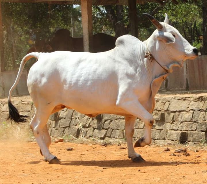 Malvi cattle are an Indian cattle breed known for being one of the top draught breeds. Malvi cattle are medium to large-sized with a well-built body, long horns, and a prominent hump. The breed typically has a reddish-brown or light brown coat. They are good milk producers, with an average yield of 4-6 liters per day. Generally docile and easy to handle, making them suitable for farming.