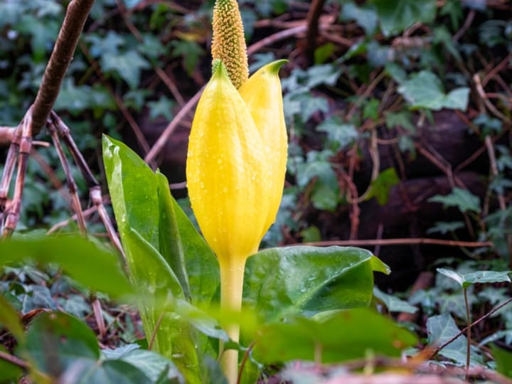 The Western skunk cabbage got its name for the skunky smell its flower emits. The plant grows in the swamps and woodlands of the US states Alaska, California, Idaho, Washington, Montana and Oregon. The plant blooms in early spring and winter with rod-shaped flowers in bright yellow. Growing to a height of 40cm the skunky smell attracts scavenging flies as pollinators.