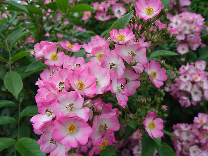 Composer George Frederic Handel has a lovely rose named after him It is a climber rose that grows to almost 8 feet. The blooms are lovely and fragrant in pink and it produces larger blooms that are semi-double. Mildly fragrant the flowers bloom repeatedly from late spring to early summer.