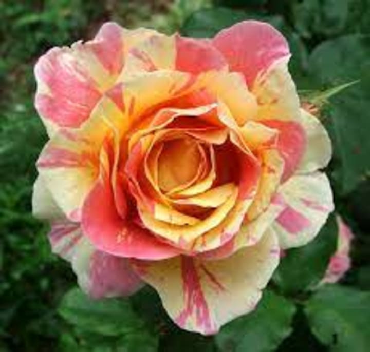 Freddie Mercury from Queen was a talented songwriter and singer who passed on much too soon. In his memory, The Freddie Mercury Fan Club raised money to create a rose in his honor. The lovely and fragrant rose bursts forth in pink, yellow, and apricot.