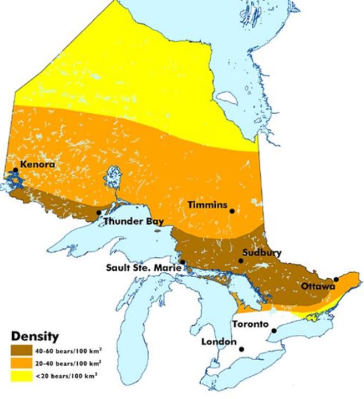 So I checked online for the environmental data and sure enough, there are bear maps that one can source. However, much of what I could find was dated, some of it by even a decade. I believe at the time it was approximately 20 bears per 50 mile radius in the most northern areas. That's easily one per mile in the woods depending on their movement and offspring. These animals can migrate 5o miles in a day and get this - they can smell a dog 50 miles away. Not to mention a child.