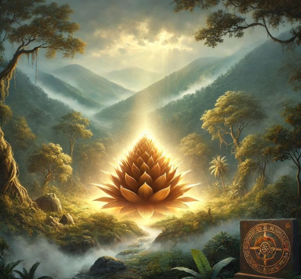 This illustration captures the mystical beauty of Kolli Hills, known for its lush forests and ancient legends. At the center of the scene is the mythical herb believed to have the power to transform iron into gold, glowing with an ethereal golden light. The serene atmosphere, surrounded by misty mountains and nature’s untouched splendor, symbolizes the region’s historical and spiritual significance. The artwork reflects the blend of folklore and natural wonder that defines Kolli Hills.