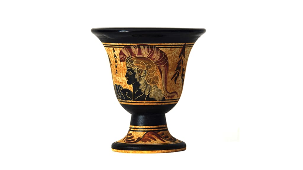Only when you attempt to put too much into the joke does the punchline become apparent. If the cup is filled past a certain point, the liquid will begin to drain out through the stem, potentially staining your himation or chiton with wine.