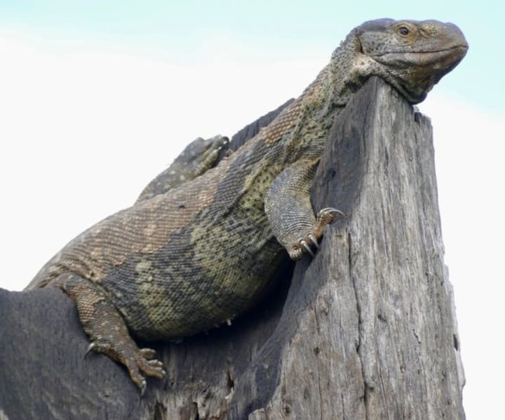On average, they range in length from three to five feet, with males being slightly larger than females. In actuality, their lengthy tails, which resemble whips, make up close to half of their overall length. The rock monitor's tail is essential because it keeps an individual alive throughout the driest seasons of the year when prey is in little supply. Snails, millipedes, rodents, and if they can capture them, even young tortoises are eaten by rock monitors. For four months, they'll eat as much as they can and put on a lot of weight.