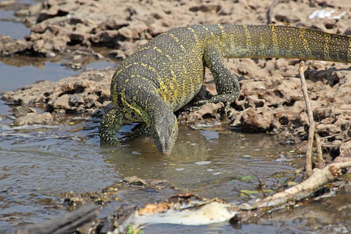 It has a one-and-a-half-meter-long muscular body and a poisonous bite that can be fatal. It is stated that all of the nearby properties avoid the Nile monitor. It is awkward on the surface, but when submerged, it changes into a quick hunter. On the other hand, the large lizard is quite pleased to eat the decaying remains of others at the bottom of the swamp. Almost anything that will fit in its mouth will be consumed and digested by it.