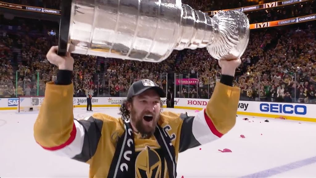 ladies and gentlemen the Stanley Cup [Applause] Bill Foley had the vision the creativity and the audacity to bring the first major league team to Las Vegas and then he said we're going to win the Stanley Cup in six years what has happened here has been simply incredible not only is Vegas a hockey town it's a championship town congratulations to George McPhee Kelly McCrimmon Bruce Cassidy and most important the players on your Vegas golden knights Mark Stone our tradition for this 130 year old trophy it's the presented to the captain all right [Applause] Mark stone hands it off to the original Vegas goal tonight Riley Smith [Applause] count Smythe winner is going to get it next as Marsha so hands it off to another original Vegas golden Knight William Carlson we welcome in the great one our teammate Wayne Gretzky who was presented to Stanley Cup on four different occasions Wayne described the feeling well as an athlete as a hockey player there's no better feeling than the first time you get to lift the Stanley Cup and as you're skating around with the trophy obviously your teammates are a huge part of that the coaches the fans in the city and then you think about your grandparents and maybe the odd uncle or minor league coaches that helped you get there and those are the thoughts that go through your mind that they all are a big part of you lifting that Stanley Cup 2023 Stanley Cup Final well I was just so impressed by both teams I thought both coaches did an amazing job both organizations deserve a lot of credit Florida played their hearts out they just happened to run up against the team that was a little bit bigger a little bit faster had a lot of depth and their goalie ended up playing extremely well they should keep their heads high they played against the machine in the Stanley Cup finals and they lost to a really good Hockey Club [Applause] on air and off here how well Vegas defended the importance of being able to play without the pumpkin pen but don't break at times yeah just the importance of playing that way and eventually winning like you did so many times a year let me tell you something there's no nothing more fun than scoring goals in the National Hockey League we all love to score goals but I said it last year I'll save this year defense wins Stanley Cups when our team learned in Edmonton how to play defense we became Stanley Cup champions Aiko was a machine back there for an offensive player he was always in the right position the right spot and he was their offensive guy that led with a two-way game and that just trickles through the whole Hockey Club they deserve all the credit they're getting they they didn't take a lot of penalties they killed them when they had to defensively they were strong they didn't give up a lot of two-on-ones ultimately it became Stanley Cup champions Wayne you watch Stanley Cups with an all-time great goaltender and Grant Fjord as Jack Eiffel was having a cup from Chandler Stevenson we saw the photos owner of the series he attended your hockey school and now he's a Stanley Cup champion well we can say now that we put through a Stanley Cup champion through our hockey schools right but you know what uh people in this game are so wonderful he's a great example he worked his tail off he didn't give up he was fifth goalie I know we talked a lot about this he was the fifth goalie on the list and he won a Stanley Cup and listen they could have picked one of four or five different guys to win the cons Smite and he was in that mix no question how do you probably played in the first round he might even had a better chance than anybody but listen good for him what a great story and like I said we finally got a gun they went through our hockey score and won a Stanley Cup but listen I wanted to say to Jonesy good luck to you man we're all going to miss you and we know you're gonna do a great job in Philadelphia and I know Mr Snyder's looking down and he knows he got the right guy to do that job good luck to you Jonesy he certainly will thanks Wayne we'll look forward to hearing from you in the gag during the post game it's been great spending the last couple of weeks with you all right guys thank you well thank you very much Mark what did it feel like when you were handed the Stanley Cup by the commissioner unbelievable just looked in my teammates eyes when I got it one of the craziest feelings I've ever had um that's another idea with a 25 30 best friends um makes it that much more special when you're a kid growing up did it match the feelings you dreamed about yeah can't even describe the feelings in my like right now it's [Applause] it's the groin of an 82 Game season four playoff rounds you're grinding you're grinding you're grinding at the end of the day the last team standing it's incredible and not making the playoffs last year and doing what you did this year what can you say about your head coach Bruce Cassidy I mean he came in brought an intensity to our locker room that maybe we needed um and I think he he wanted to win just as bad as everybody else in that Locker in my even see the emotion in his face right now um I don't know what else to say at all everybody that's in those four walls it's amazing go celebrate with your teammates congratulations thank you mayor [Applause] backside out to Jackie with the conspire Trophy winner Jonathan marshasso Jonathan an original six The Vibes are a lot different now than they were in 2018. yeah it was uh we waited a long time for that moment to come back and uh we want to make sure that we uh we cash in our time and I couldn't be more proud of our team our organization we've grind in for a few years and uh [Music] [Applause] it's an 18. so now winning it all and achieving a lifelong dream you know what that's the pain that you you can describe too and that's the feeling that we have right now it's hard to describe I mean that pain was it was tough to be honest it took me almost a couple of months a full ye