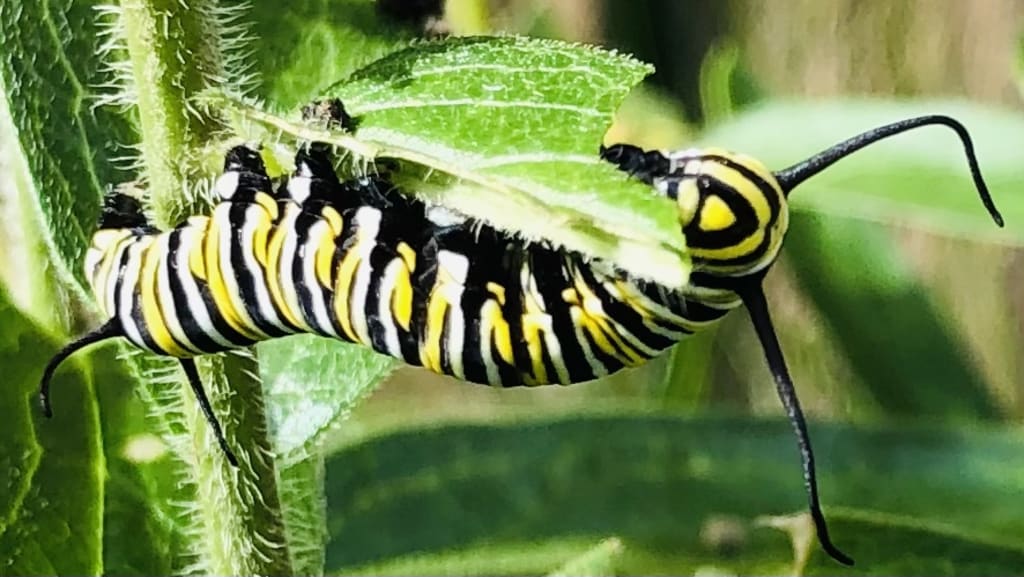 Finally, on a hot afternoon in August 2019, I discovered an army of just-hatched caterpillars attacking my milkweed. What joy! And what pride to know that I myself have the power to help out a species facing extinction. If I contribute nothing in life but a safe space for this clutch of eggs, I will know that I have been a steward for life on this planet.