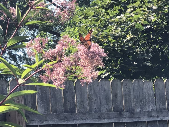 They each hatched on a different day and spent that day lounging in my garden, sunning their wings on the fence and relaxing in the Joe Pye Weed. And then they were gone. The fourth generation since their ancestors left Mexico in the spring, they were out in the world alone. Soon the weather would shift and the days would get shorter. I hope they found a place to lay their eggs.